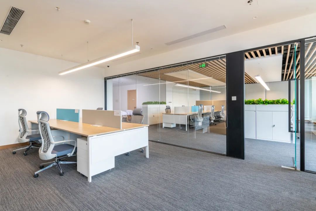 办公家具的布局注重空间流线及秩序感,无隔档的工作空间更益于有效的成员沟通与企业效率,营造通透、舒适的空间氛围。